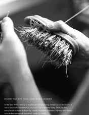Iris hantverk has strong ties to and share their history with the Visually impaired organization in Sweden, SRF. In the 1900s century, Sweden began to change from being an agricultural country and develop into an industrial society. People moved to the cities - also this was the time when the labor movement emerged. In November 1870, Dr. Axel Beskov took the initiative of founding the Manilla School - a workhouse for visually impaired craftsmen in Stockholm. Initially there were nine people, most of them lived at the workhouse. The salary was 75 percent of product sales. Part of that went to pay the accommodation. Work began 6 am and ended at 9 in the evening. In 1889 a group of visually impaired craftsmen founded a political independent organization, "De blindas förening", whose purpose was to encourage, the otherwise much isolated group of visually impaired, to actively participate in society in different social contexts such as musical events and lectures, but primarily to work for equal access to employment and live by their work. A large part of DBF work came to revolve around the development of support for the artisans and their ability to live off their work. In 1902 DBF decided that materials for brush binding and basket making would be purchased collectively in order to reduce prices and be sold to the visually impaired craftsmen for purchase price. In 1906 a property was bought on Majorsgatan 12, it accommodated a number of functions: office and library, brush binding factory, warehouse for raw materials, sales of raw material and a shop. These undertakings made the foundation for what Iris hantverk is today.
